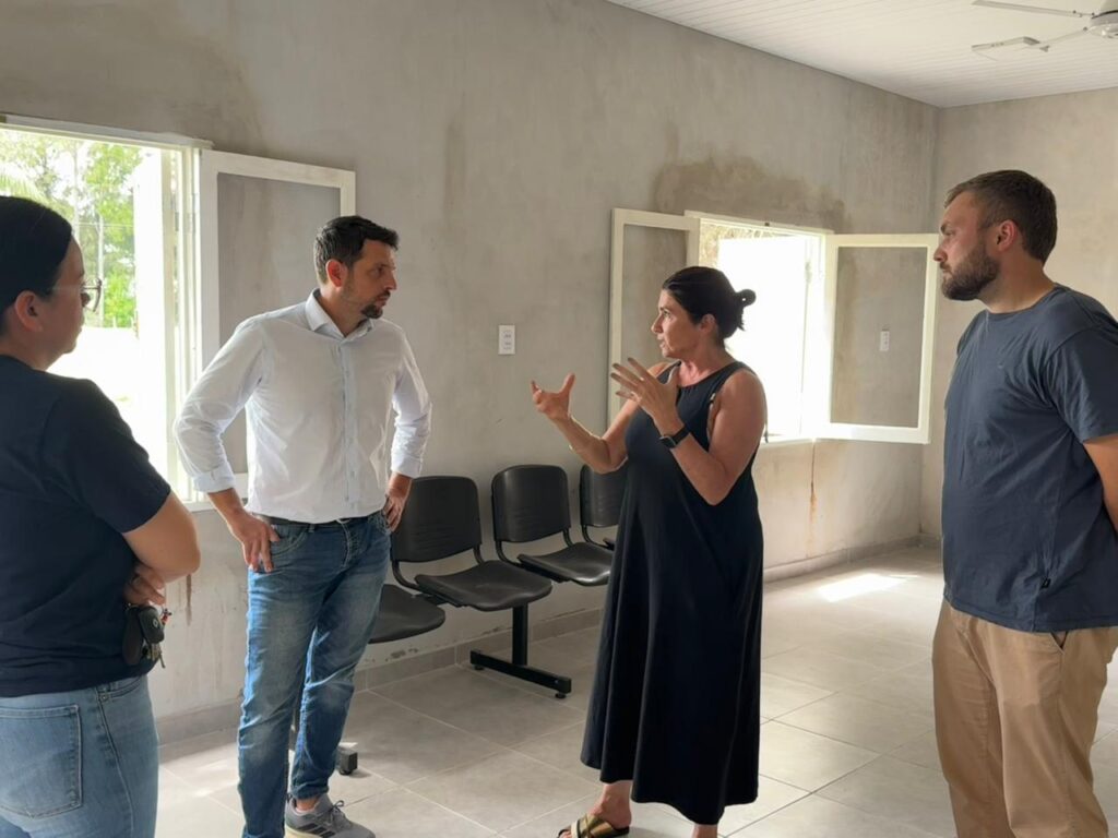 El intendente Gonzalo Braidot recorrió los avances de la Posta Sanitaria del paraje El Timbó, acompañado por el secretario de Gobierno Esteban Zanel, la coordinadora de Programas de Salud Milagros Abraham y SAMCo de Avellaneda, representado por Adelaida Benítez, integrante de su equipo de trabajo.