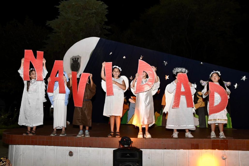 Niños y niñas de catequesis fueron protagonistas de la puesta en escena, representando el pesebre viviente a través de cantos, bailes y relatos, en un clima de alegría y preparación para las fiestas, con una destacada interacción con el público. La actividad contó con la conducción de la profesora Marisel Franzoi.